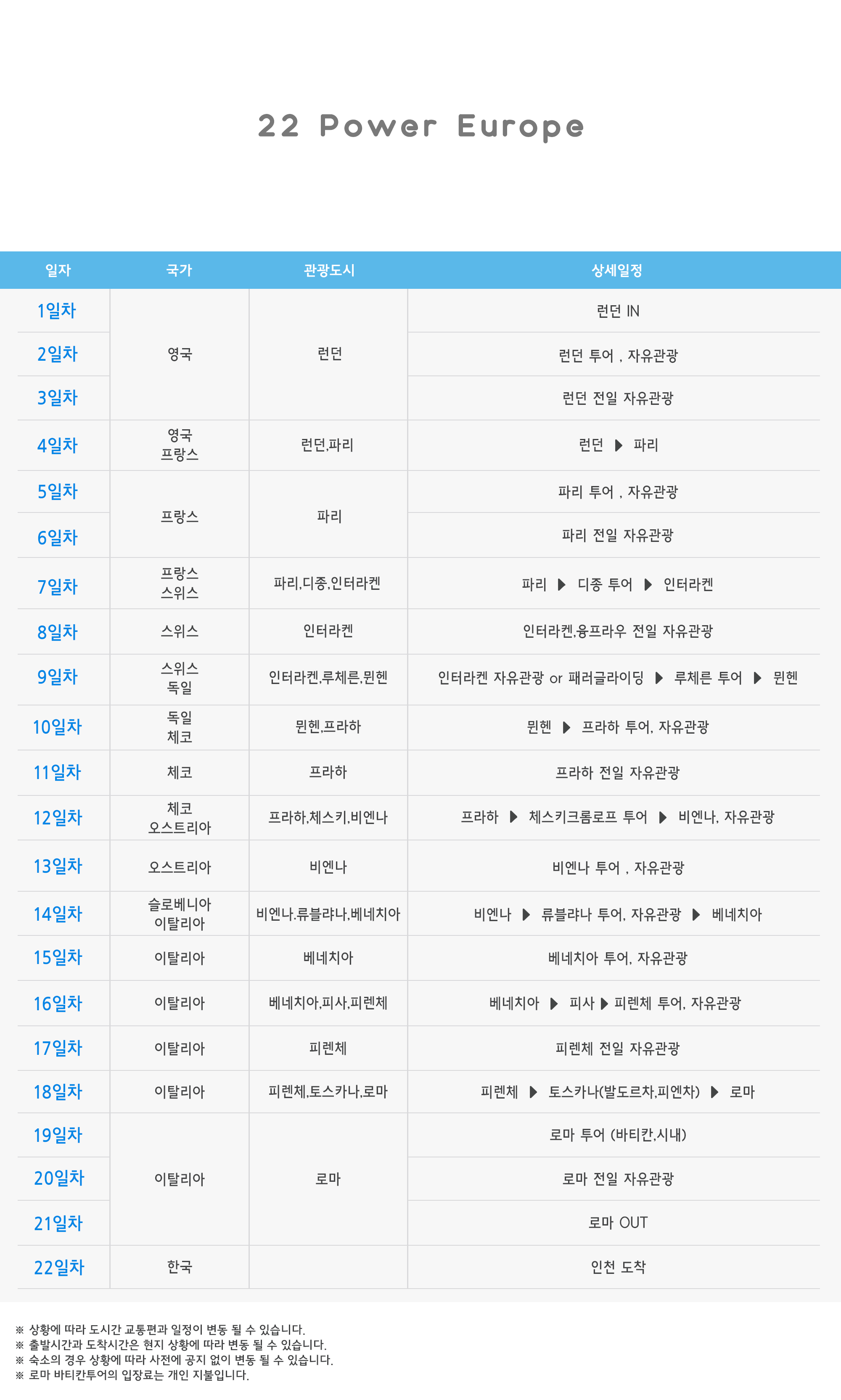 유럽 공통여행정보