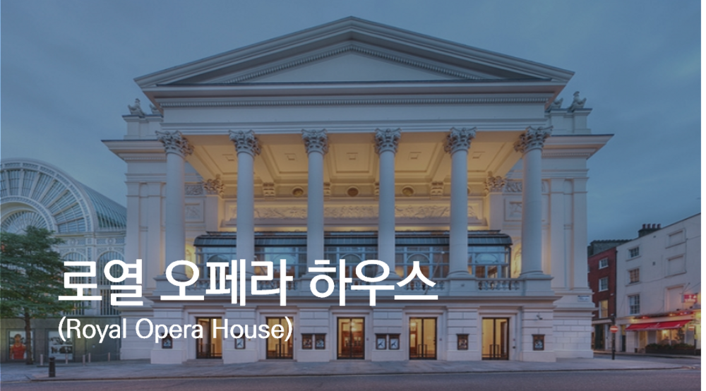 런던의 오페라 극장과 공연 예술의 발생지다. 이곳은 런던의 거주 지역인 코번트 가든에 위치해 있어서 종종 '코번트 가든'으로 불린다. 로열 오페라단, 로열 발레단과 로열 오페라 하우스 교향악단의 본거지이기도 하다. 2268석과 4층의 박스석, 발코니석, 극장의 정면 관람석 갤러리로 구성된다. 프로시니엄은 12.20 미터 넓이와 14.80 미터 높이다.